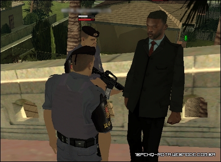 Oficiais de ROTA conversando com o suspeito.